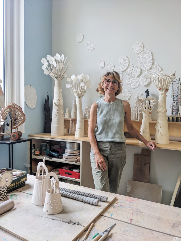 Papier, céramique, bronze ou matières mixtes deviennent les vecteurs d’un langage sensible, où la sculpture dialogue avec le paysage, le corps ou la structure végétale. Chaque pièce porte une dimension poétique, presque méditative, capable de modifier subtilement la perception d’un lieu.