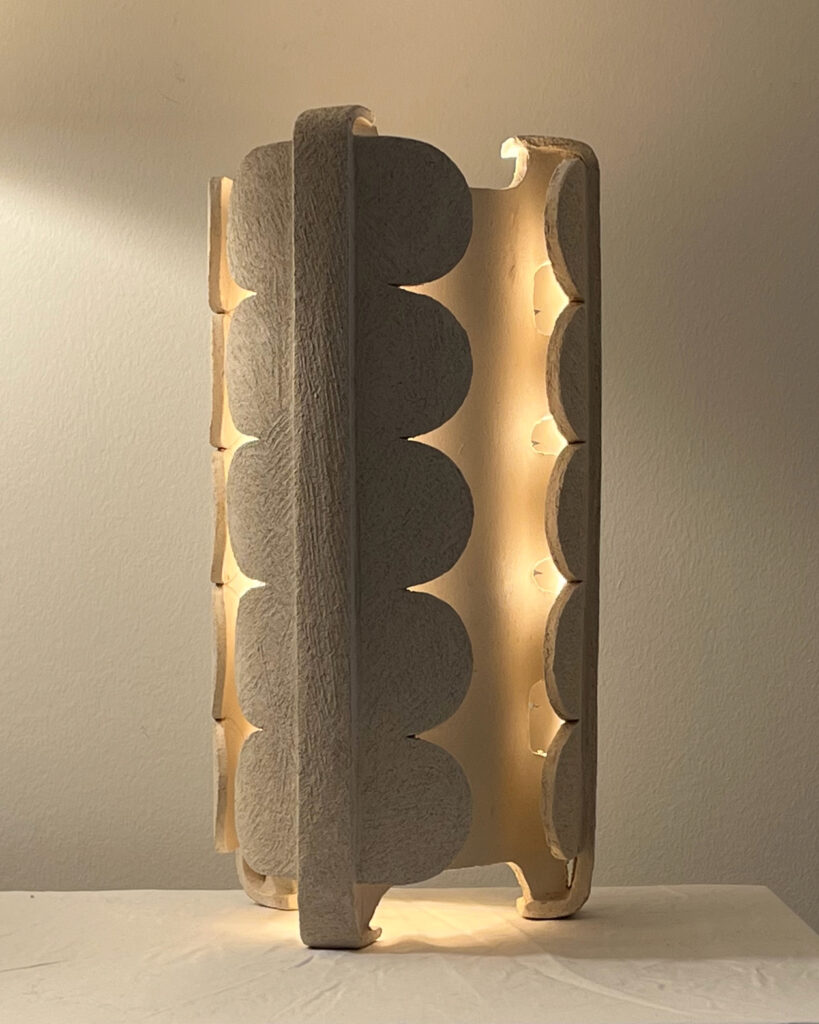 Dans cet univers, la lumière ne s’ajoute pas à l’objet : elle en émane. Elle est contenue, révélée, diffusée par la matière elle-même. Céramique, papier recyclé, fibres naturelles, minéraux ou textures organiques deviennent des filtres sensibles, capables de transformer en douceur l’atmosphère d’un lieu.